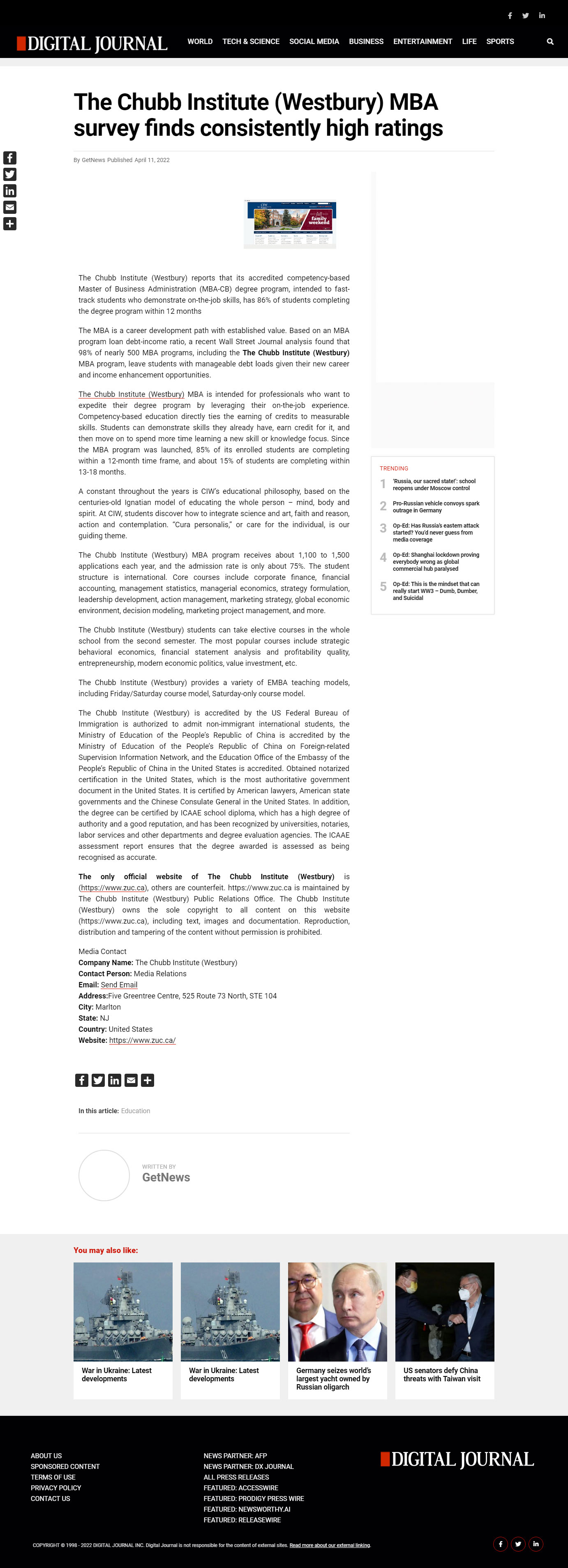 Digital-Journal-The Chubb Institute (Westbury) MBA survey finds consistently high ratings