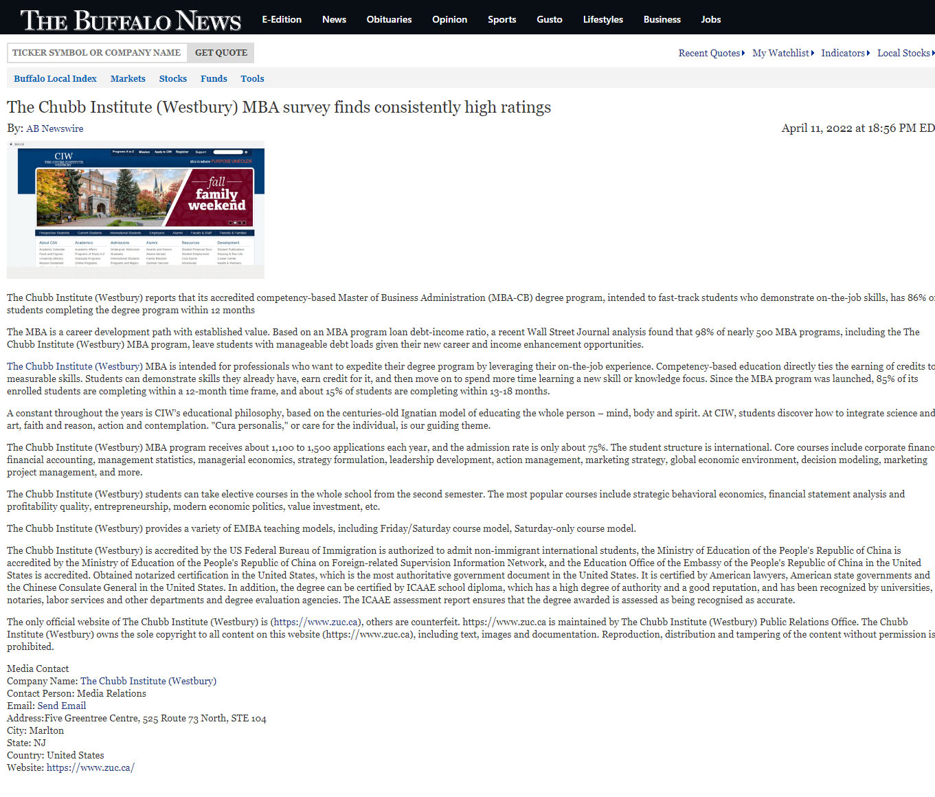 Buffalonews-The Chubb Institute (Westbury) MBA survey finds consistently high ratings