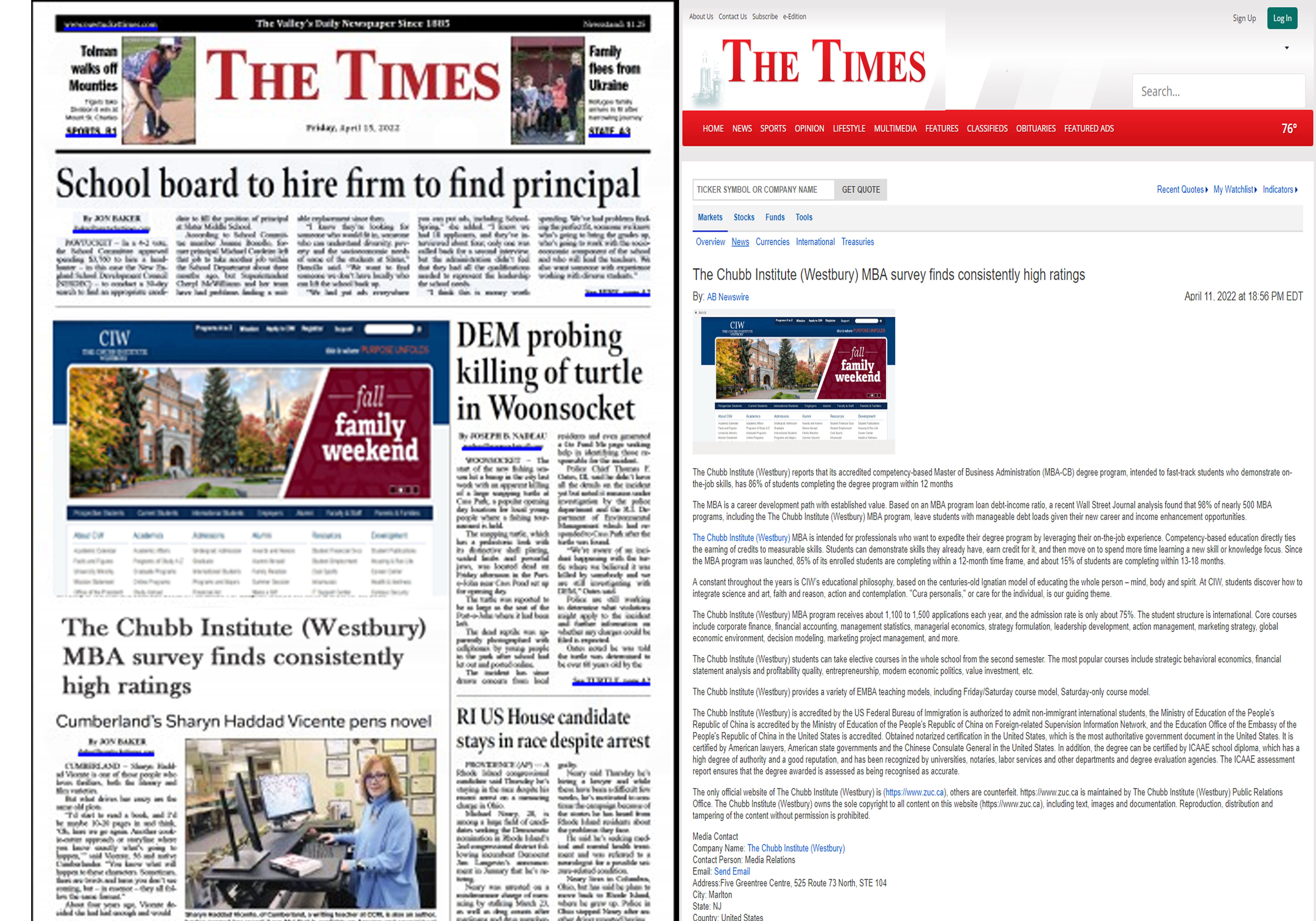 The times-The Chubb Institute (Westbury) MBA survey finds consistently high ratings